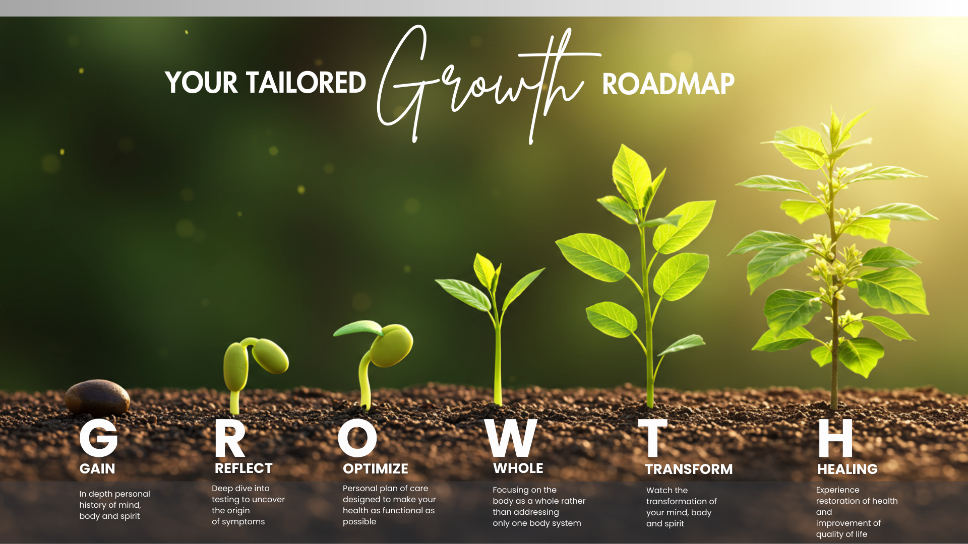 We take a personalized functional medicine approach to help you heal from the inside out, naturally and sustainably.